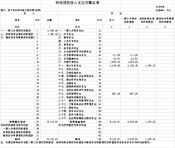 四、财政拨款收入支出决算总表
