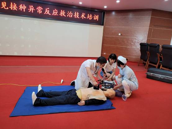 培训会上,休宁县总医院相关专家针对在新冠病毒疫苗接种中可能出现的接种不良反应及应急处置方法等方面进行了全面细致的讲解。同时还进行了心肺复苏、除颤仪等实践技能进行了现场演示和操作培训。