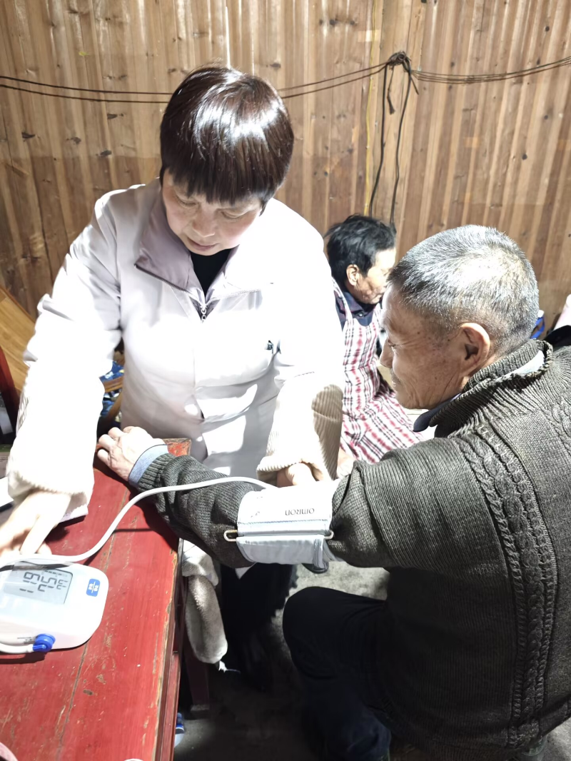 随访过程中,家庭医生逐户走访高血压、糖尿病患者家中,为居民免费测量血压、血糖、身高、体重、腰围,并详细询问生活方式、抽烟饮酒及近期身体状况,针对疾病基本情况开展耐心宣教和指导。