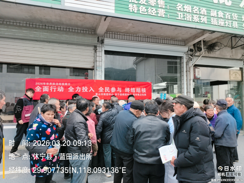 为进一步提高辖区居民对肺结核病的认知水平,增强群众自我防护意识和能力,有效遏制结核病传播蔓延,3月20日,黄山市疾控中心、休宁县疾控中心联合蓝田镇卫生院共同围绕“全面行动,全力投入,全民参与,终结结核”这一宣传主题开展系列活动。