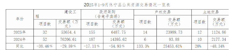 2025年1-9月份,进入平台交易项目共213个,同比下降16.47%;交易总额85256.74万元 ,同比下降8.2%,节约资金及实现资产增值12740万元。