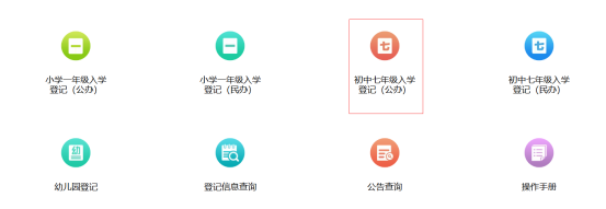 选择“初学七年级新生入学登记(公办)”入口,进入报名入口列表。