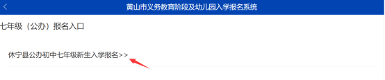 点击“休宁县公办初中七年级新生入学报名”