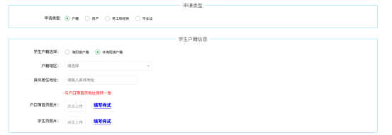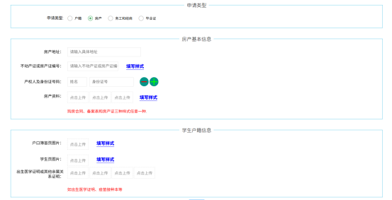 “房产”报名需填写学生户籍信息和房产信息。