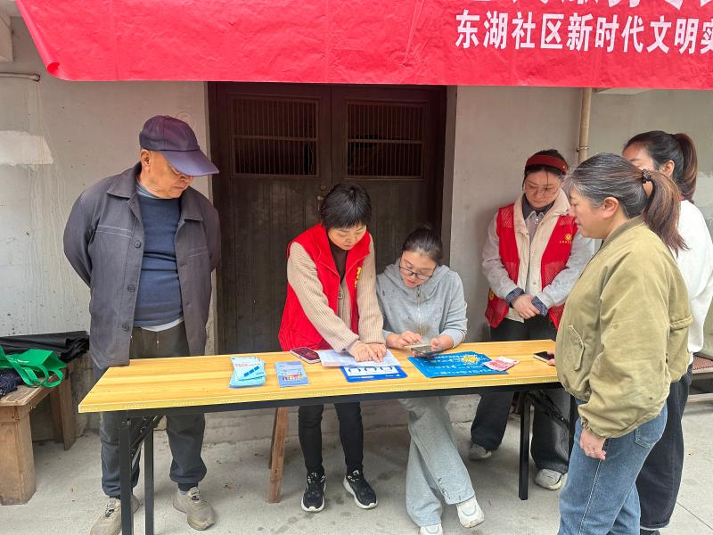 近日,东湖社区在老年居民较多的园艺场安置小区开展了医保征缴宣传活动,为居民现场讲解医保政策,并手把手指导老年人完成2026年度医保缴费。