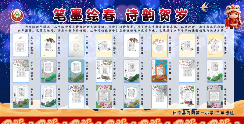 新岁序开,万象更新。近日,休宁县海阳第一小学校门口一组主题鲜明、内容丰富的展板吸引师生家长驻足观赏——这是学校一月精心打造的“导师制+五育并举”主题成果展。展板以多元形式呈现了导师引领下学生在德育、智育、体育、美育、劳动教育中的生动实践,成为校园里一道亮丽的风景线。
