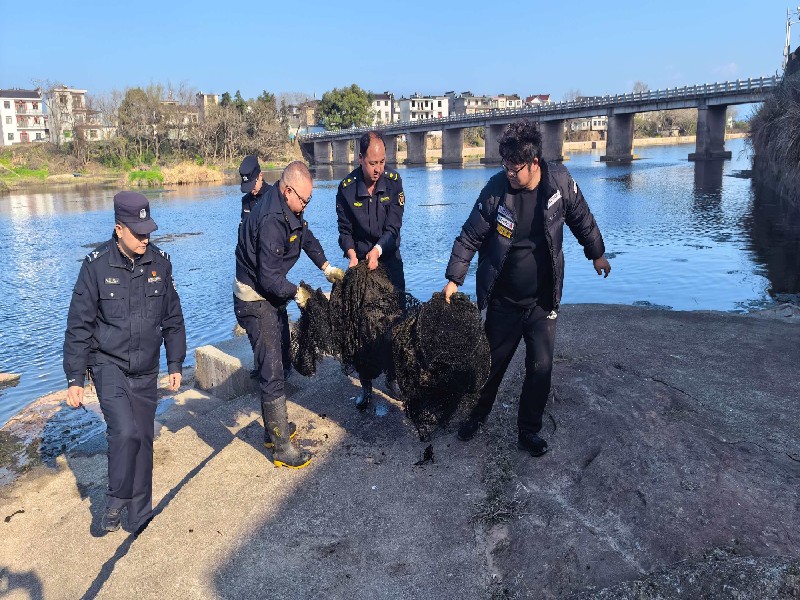 为切实保护水生生物资源,巩固禁捕工作成效, 3月12日下午,休宁县万安镇执法队联合万安派出所组织实施禁渔禁捕专项行动,对横江万安南潜、潜阜段水域范围开展拉网式巡河,集中清网清船,全覆盖排查整治。对捕鱼电鱼现象开展巡查执法,严密排查电鱼、捕鱼等违法行为,清理水面“三无”船只、地笼、丝网等捕鱼工具。此次专项行动共收缴地笼30余副、丝网10余副,并运至垃圾处理中心集中销毁,形成强力震慑,有效遏制非法捕捞乱象。