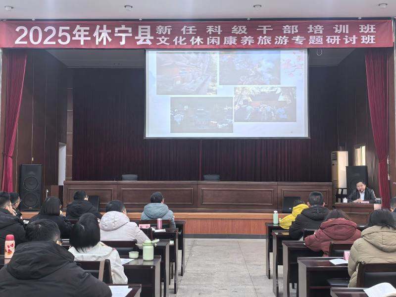 春日暖阳,路边油菜花随风舞动。休宁县委党校大会堂内,2025年全县新任科级干部培训班和文化休闲康养旅游专题研讨班的学员齐聚一堂,共同参加一场关于农文旅康融合发展的专题培训。