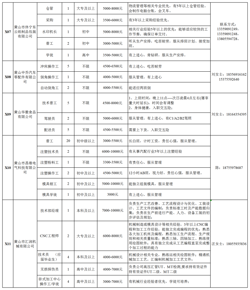 【就业驿站】休宁县用工需求岗位信息汇总表(2025年12月)