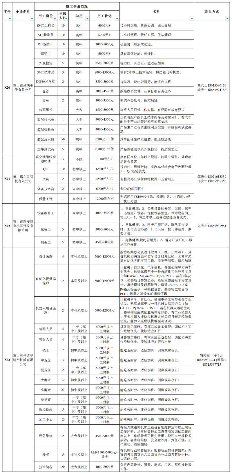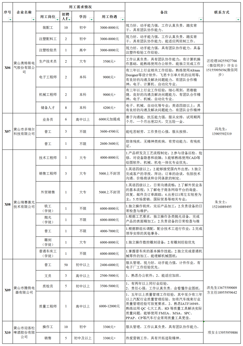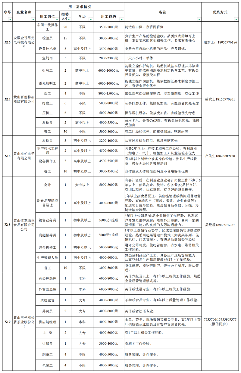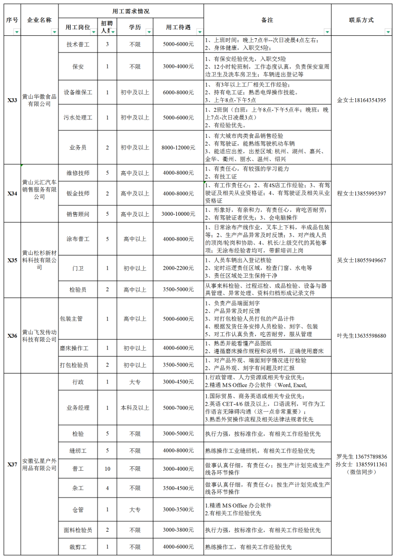 【就业驿站】休宁县2026年“就业春风行动”用工需求岗位信息汇总