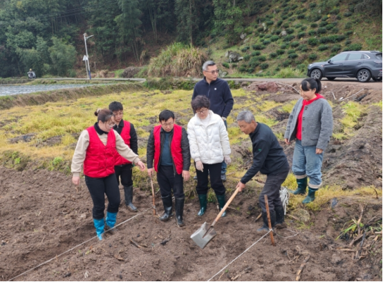 在培训现场,黄山学院专家团队坚持“实地、实情、实教”原则,将课堂设在田间地头,围绕红托竹荪种植过程中的关键环节,开展全流程实操教学。结合当地土壤条件和气候特点,从种植土地挖土整地、菌棒科学消毒,到菌种摆放位置、覆土厚度等细节,逐一进行示范讲解。
