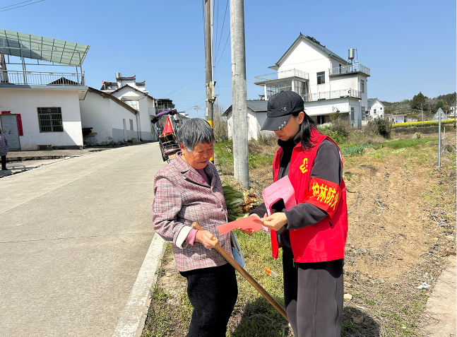 森林防火宣传活动期间,渭桥乡妇联组织巾帼志愿者积极行动,一抹抹“志愿红”身影无处不在,她们是森林防火的“宣传员”、是隐患排查的“侦察兵”、是文明新风的“倡导者”……为更好的将防火宣传落实到位,志愿者们向村民们发放“文明祭祀倡议书”的同时,还不忘结合典型案例,将火情灾情的危害性告知到附近群众,告诫村民不要抱侥幸心理,禁止携带一切明火上山,否则造成损失将无法弥补。同时,志愿者们还倡导群众采用鲜花祭祀,全力营造“人人知晓、人人遵守”的森林防火氛围。
