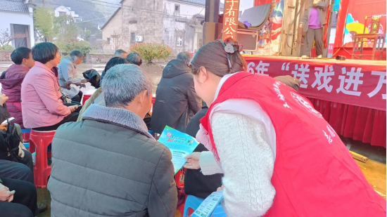 近日,休宁县“送戏进万村”文化惠民演出在五城镇各村火热开展,为基层群众送上了一场场精彩的文化盛宴。镇志愿者抢抓演出期间群众集中的有利时机,同步开展2026年30项民生实事宣传解读活动,让群众在乐享文化大餐的同时,深入了解党的惠民政策。