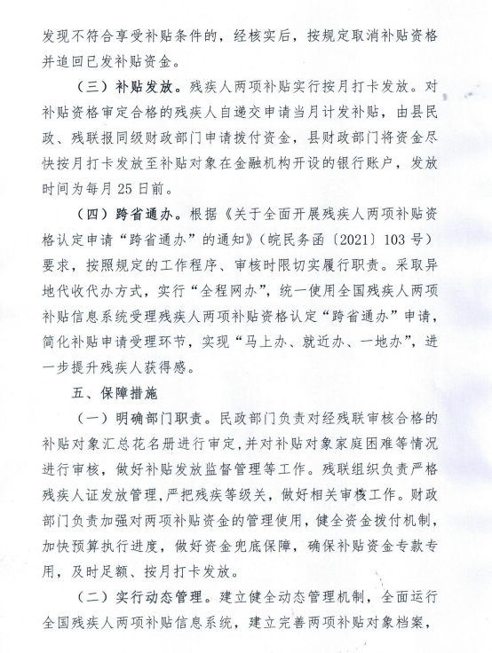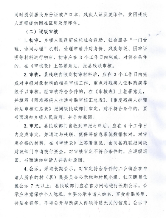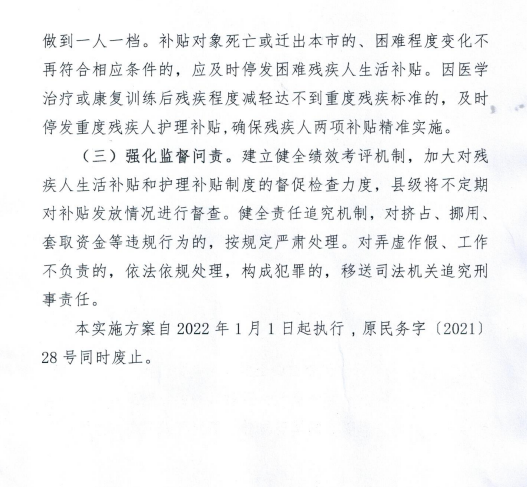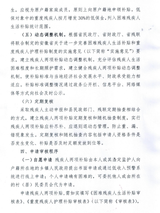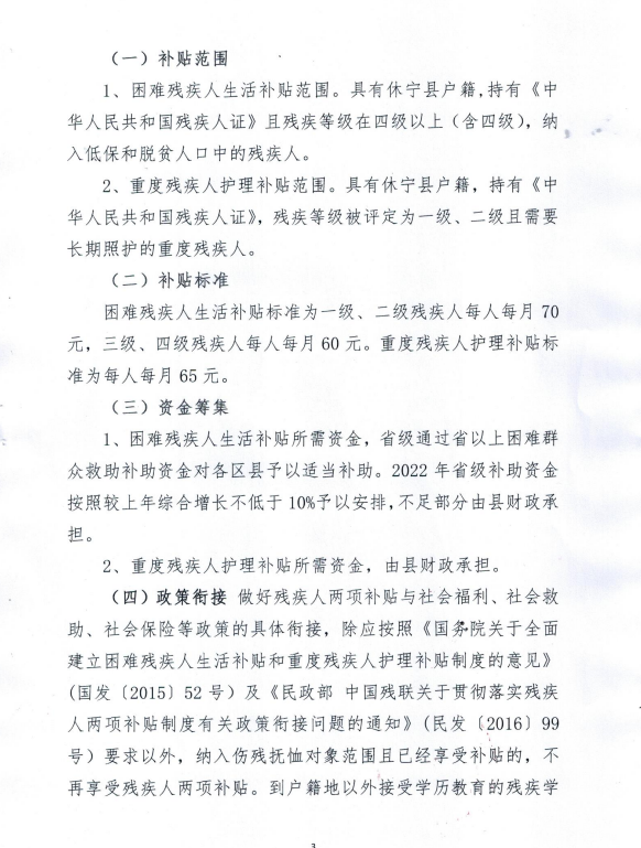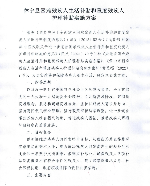 休宁县困难残疾人生活补贴和重度残疾人护理补贴实施方案