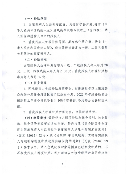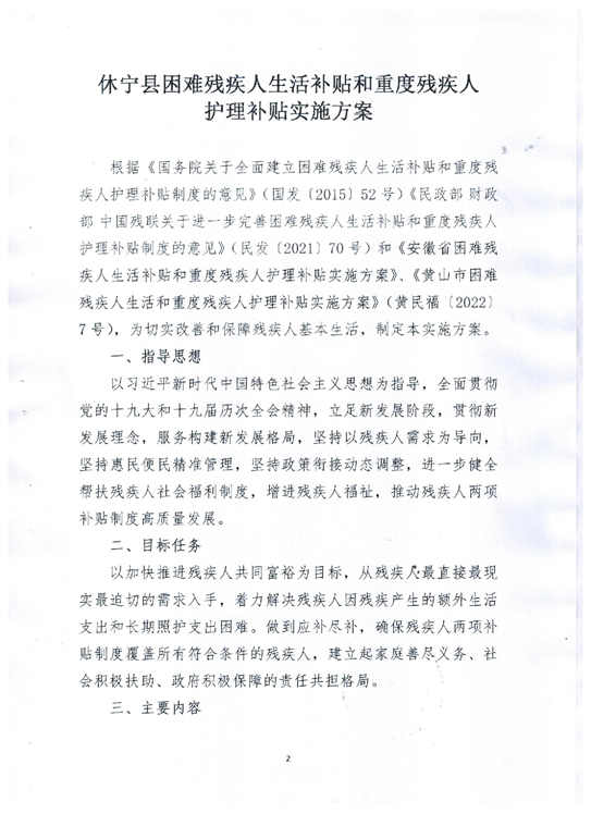 休宁县困难残疾人生活补贴和重度残疾人护理补贴实施方案.pdf