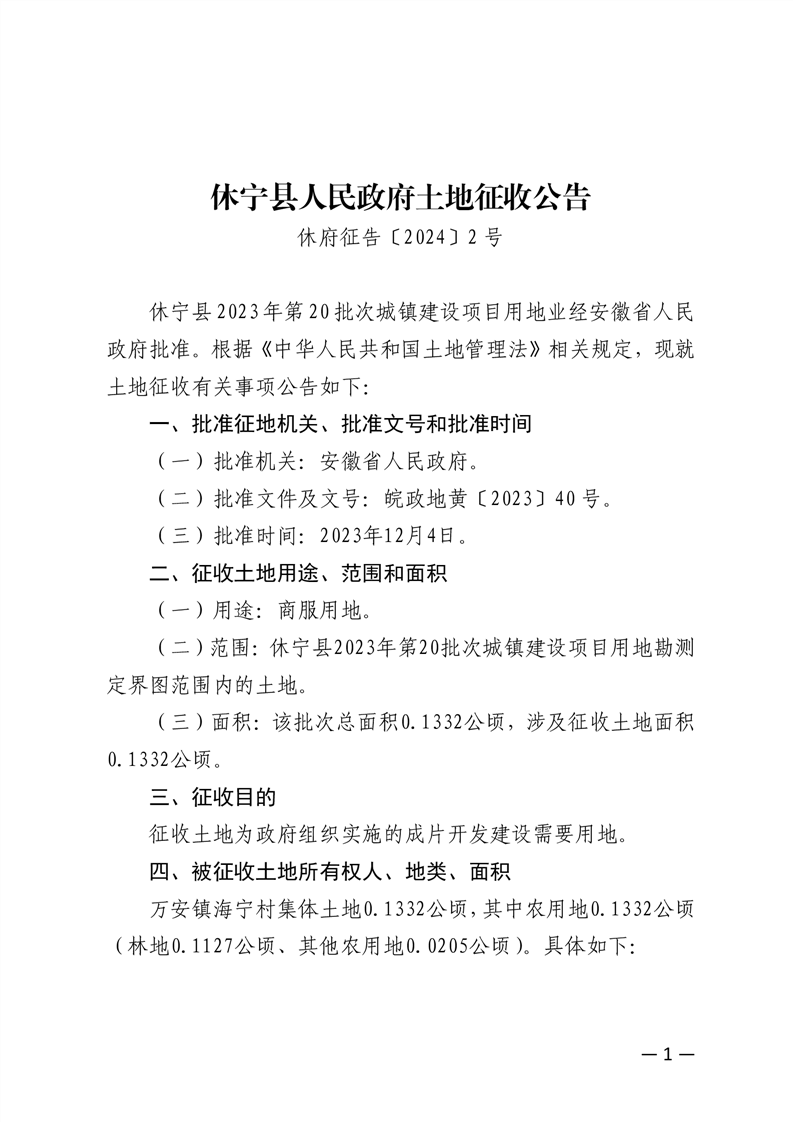 休宁县人民政府土地征收公告 休府征告〔2024〕2号