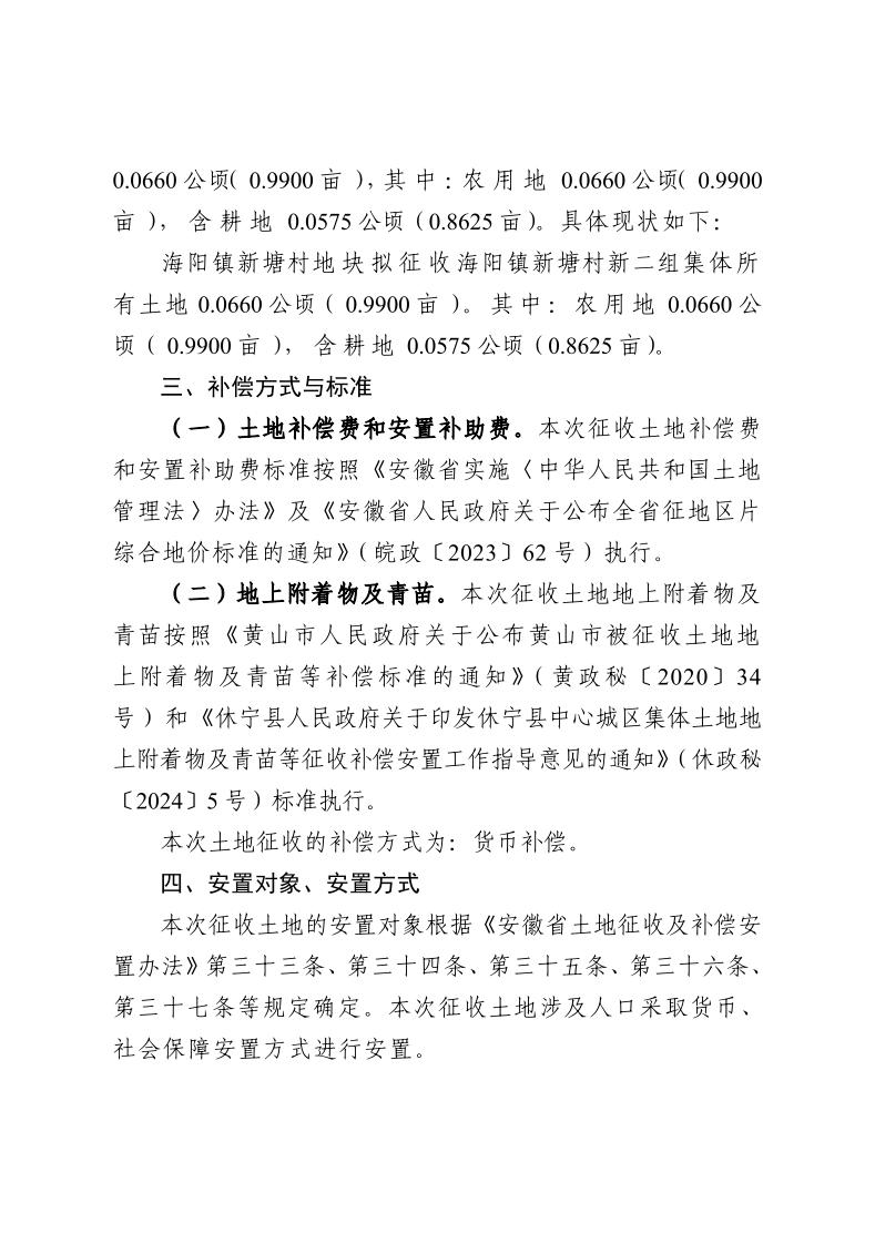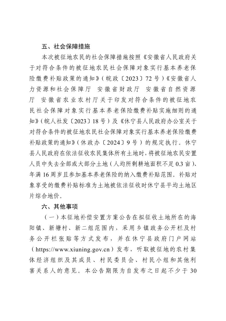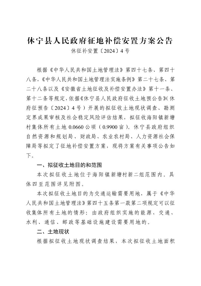 休宁县人民政府征地补偿安置方案公告 休征补安置〔2024〕4号