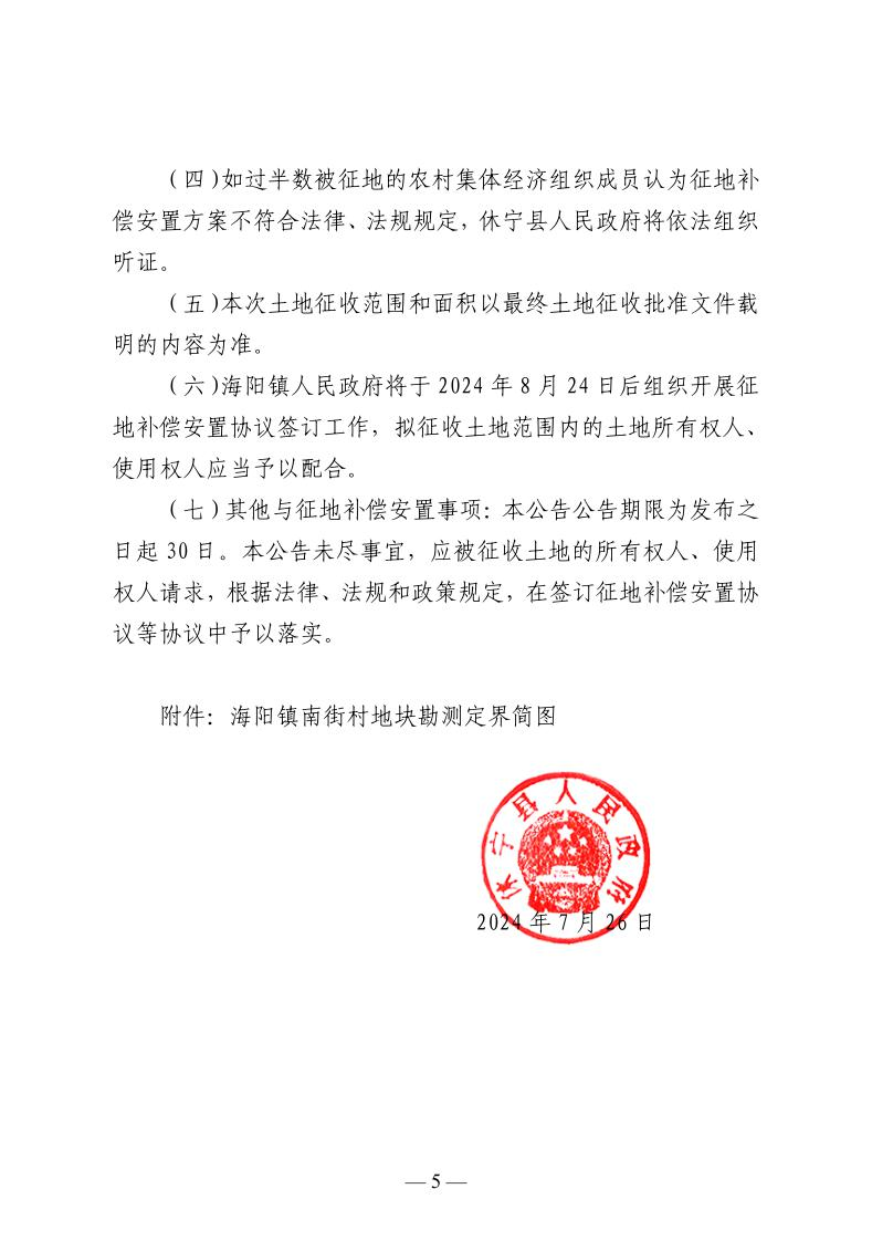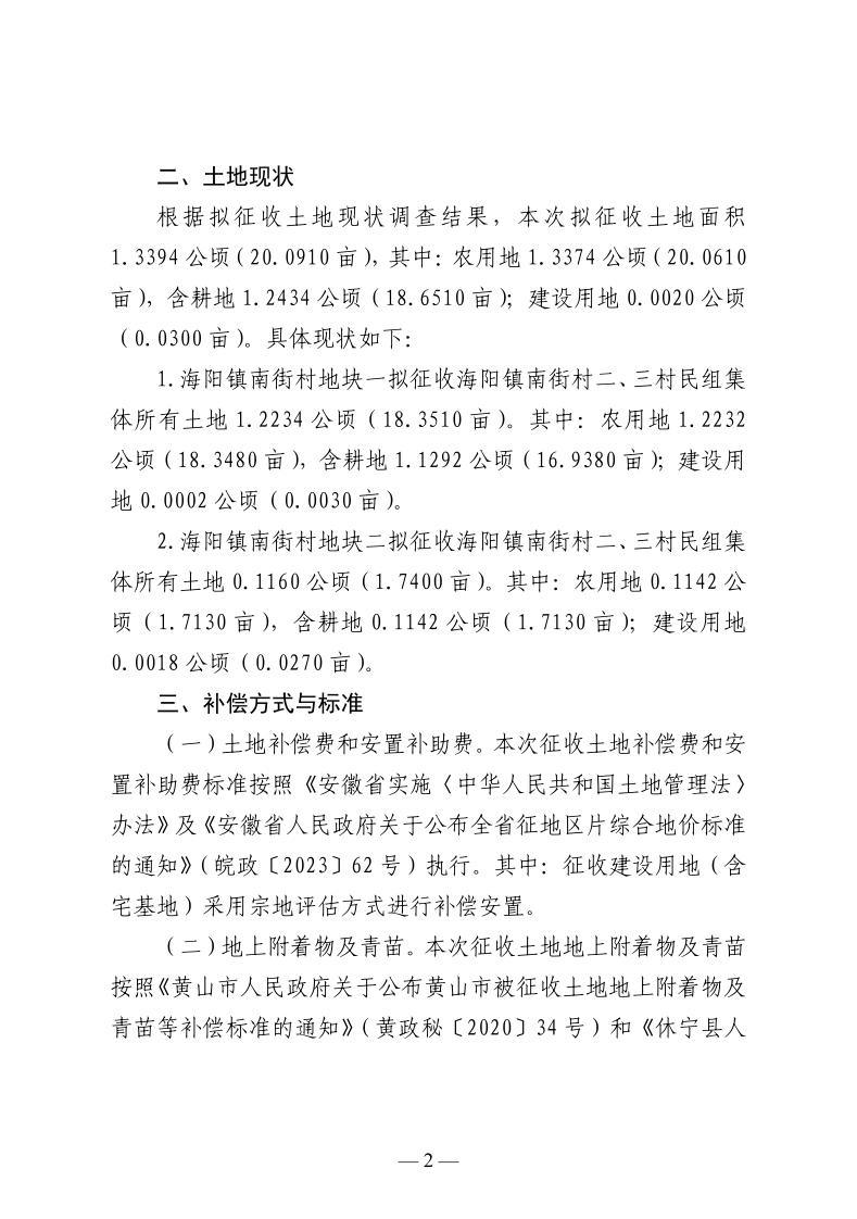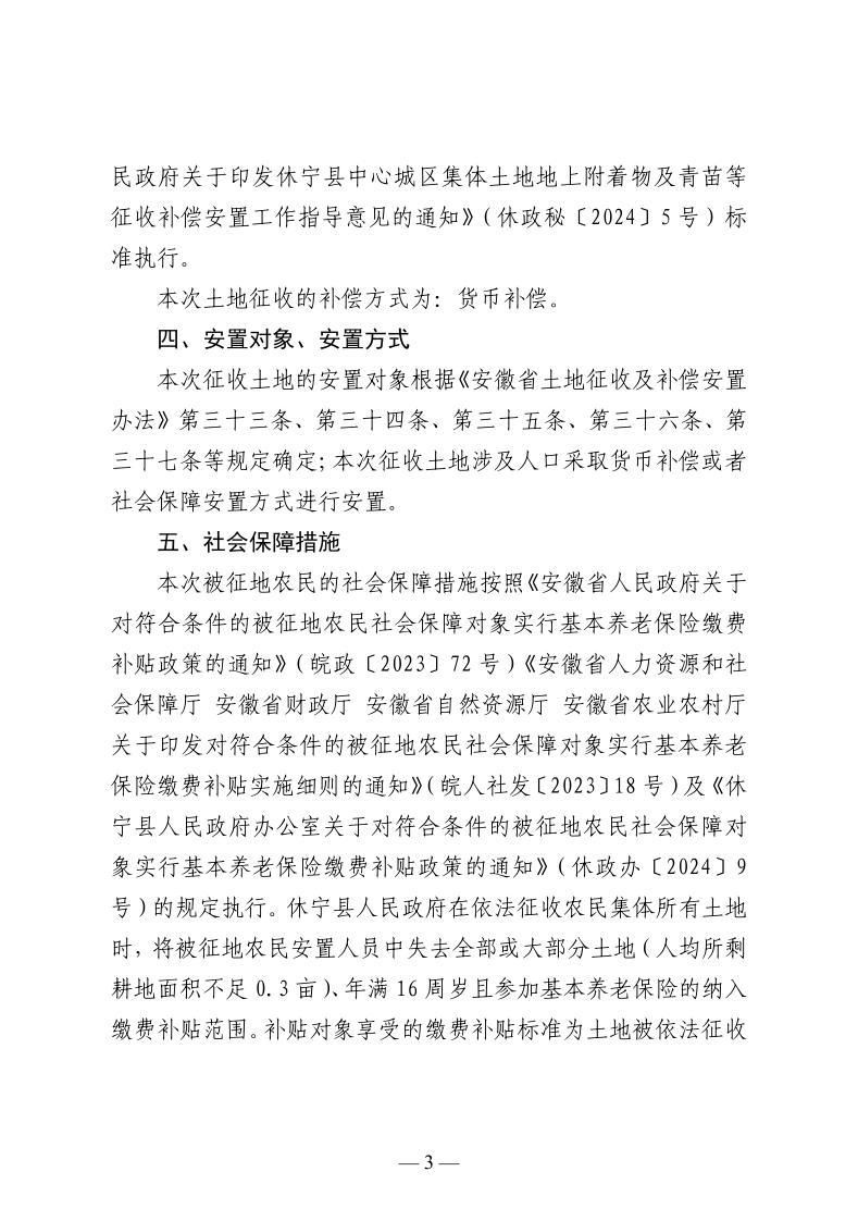 休宁县人民政府征地补偿安置方案公告 休征补安置 〔2024〕 5号