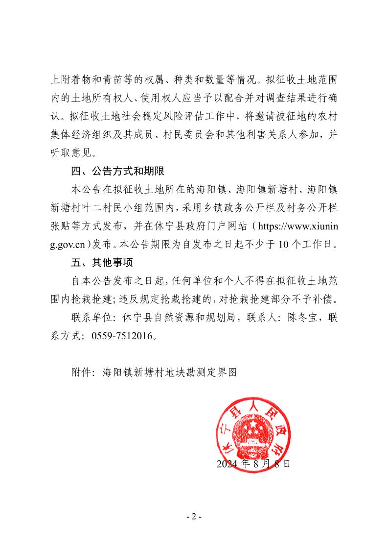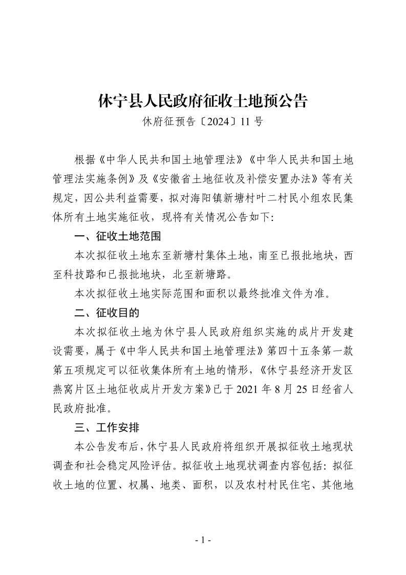 休宁县人民政府征收土地预公告 休府征预告〔2024〕11号
