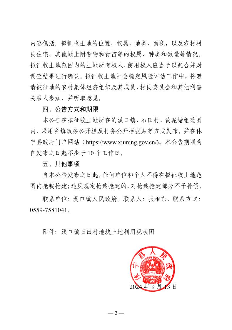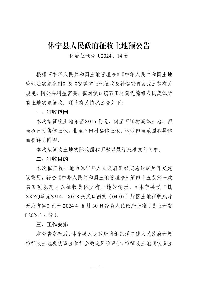 休宁县人民政府征收土地预公告 休府征预告〔2024〕14号
