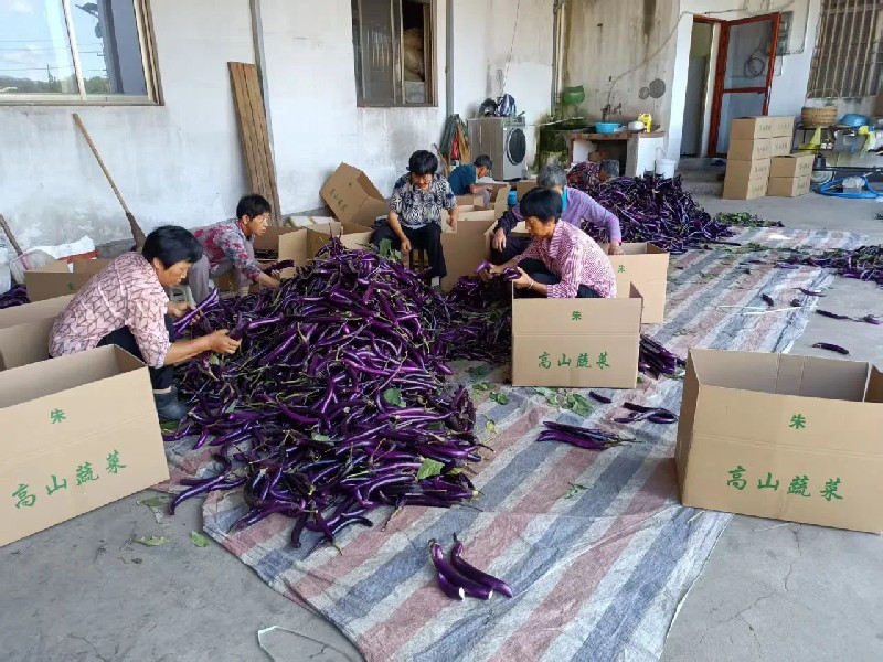 近日,走进休宁县商山秀丰家庭农场蔬菜基地,放眼望去,一排排紫亮饱满的茄子从绿叶间探出头来。村民们头戴遮阳帽、手持剪刀,熟练地穿梭于田垄间,采收、分拣、装箱、搬运、装车……各环节分工明确,衔接紧密,现场一派繁忙有序的丰收盛景。