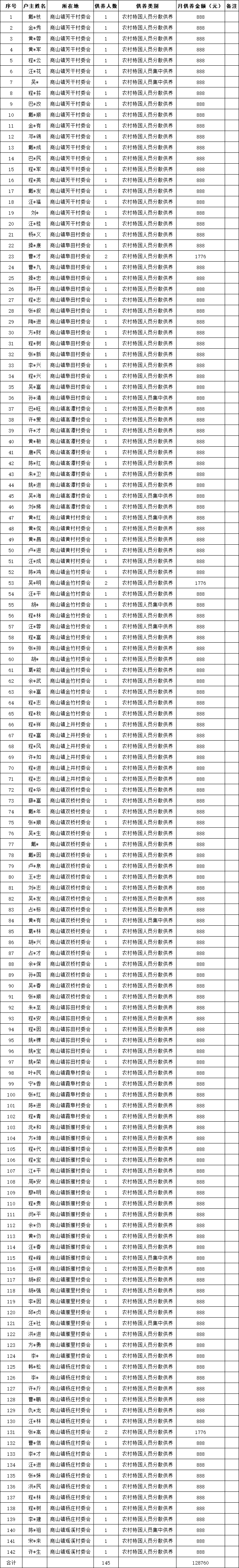 商山镇2025年7月五保发放花名册