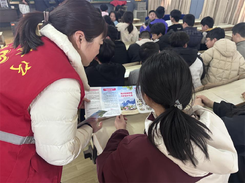 当天上午,志愿者、民警在商山中学组织开展了校园反恐应急演练,通过模拟实战场景提升师生应急处置能力。下午的活动中,志愿者走进洪里中学,以图文并茂的方式向同学们进行了集中宣讲。宣传内容紧贴学生实际,涵盖了多个重要方面:在反邪教环节,讲解了邪教的本质特征、现实危害及骗人手法,教育引导学生们崇尚科学、远离邪教;在禁毒宣传环节,重点介绍了新型毒品的种类、伪装形式及严重危害,告诫学生们要珍爱生命,坚决对毒品说“不”;针对当前高发的电信网络诈骗,民警结合真实案例,揭秘了针对学生群体的常见诈骗套路,传授了实用的防骗技巧;此外,还就校园安全,包括交通安全、课间活动安全、防范校园欺凌等内容进行了强调,引导学生们增强自我保护能力。为巩固宣讲效果,活动特别设置了有奖问答环节,学生们积极抢答,工作人员为回答正确的同学送上了小礼品,在轻松愉快的互动中,进一步加深了学生们对相关法律知识的理解和记忆。