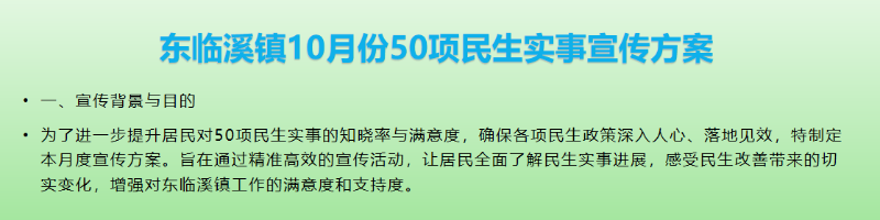 【图片解读】东临溪镇10月份50项民生实事宣传方案