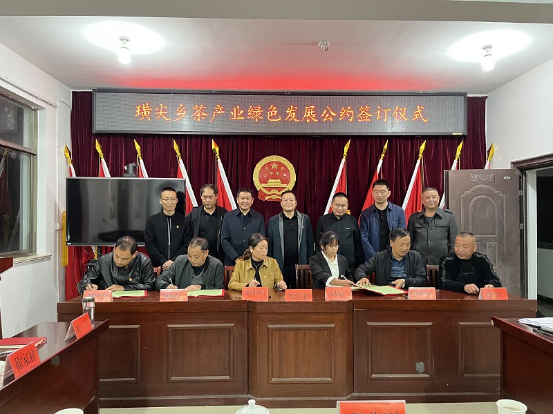 活动伊始,专家来到高山茶园,就地形地貌、气候、生长土壤、管理技术等进行调研,并实地查看茶叶加工厂,详细了解茶园管护和加工现状,现场进行技术指导。随后,专家针对茶叶生产、加工技术及绿色防控和存在的问题及发展方向进行分析,针对性地开展培训,并同与会人员就茶产业发展进行交流探讨。活动中,茶企、村合作社负责人共同签订《璜尖乡茶产业绿色发展公约》,为璜尖乡茶叶发展凝心聚力,合作共赢。