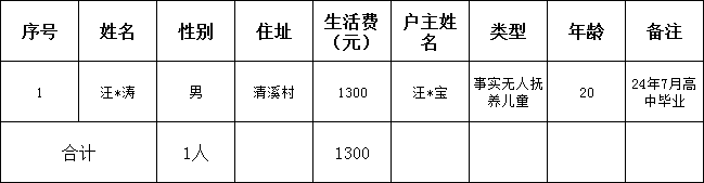 【孤儿供养】璜尖乡2024年6月份散居孤儿和事实无人抚养儿童基本生活费发放花名册