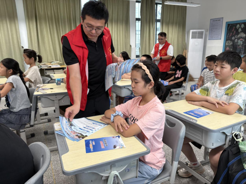活动现场,志愿者准备了休宁县 2025 年 30 项民生实事宣传单页、海报及毛巾小礼品,孩子们接过物资时满是期待。考虑到中小学生认知特点,工作人员未生硬宣讲,而是以身边实际的事例来切入,用直白语言举例,上学走的农村公路是“四好农村路”,回家能用的自来水是“农村供水保障提升工程”,村广场暑期的黄梅戏是“送戏进万村”活动,将“民生实事”转化为孩子看得见的日常,助其轻松理解政策便利。