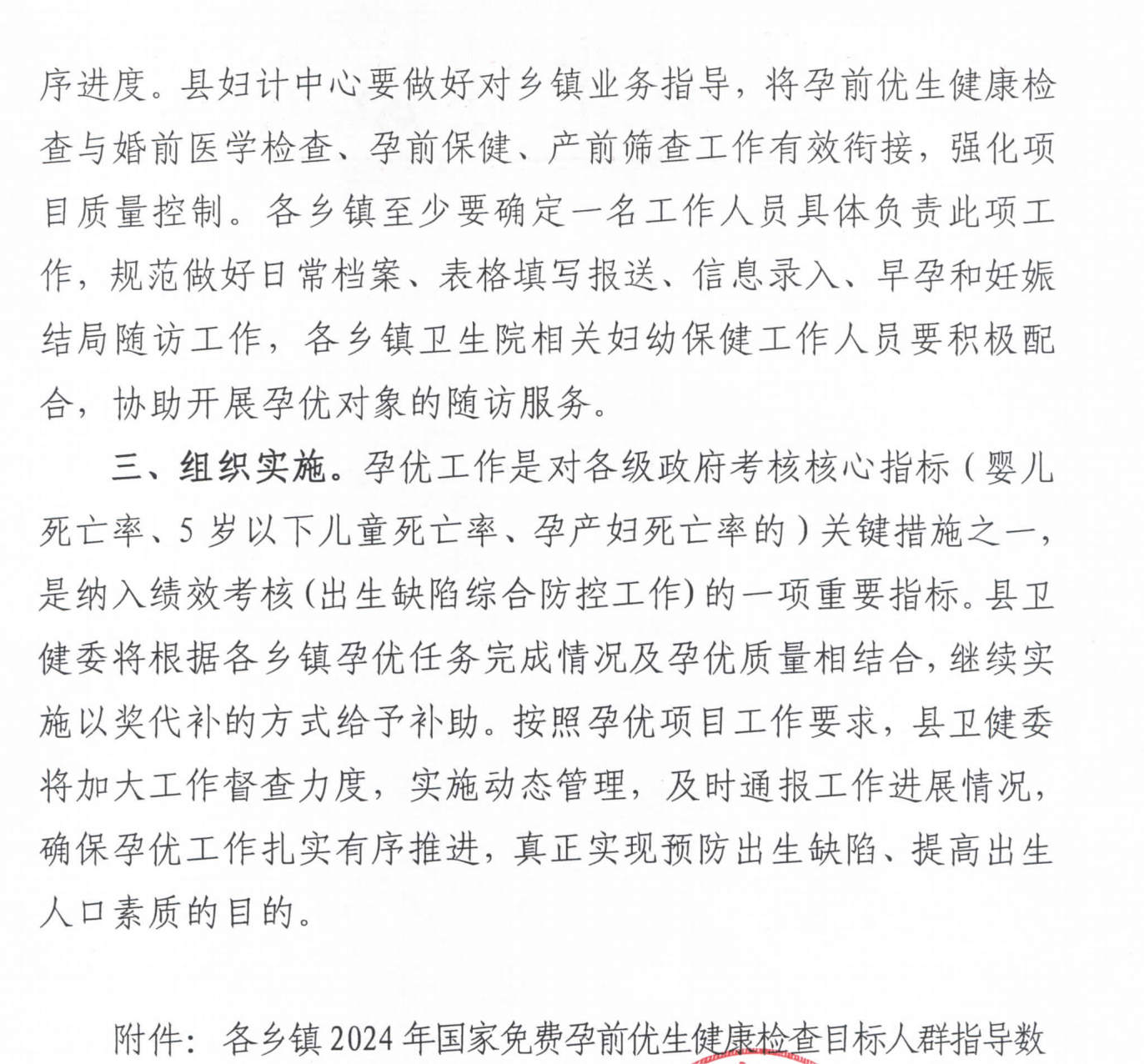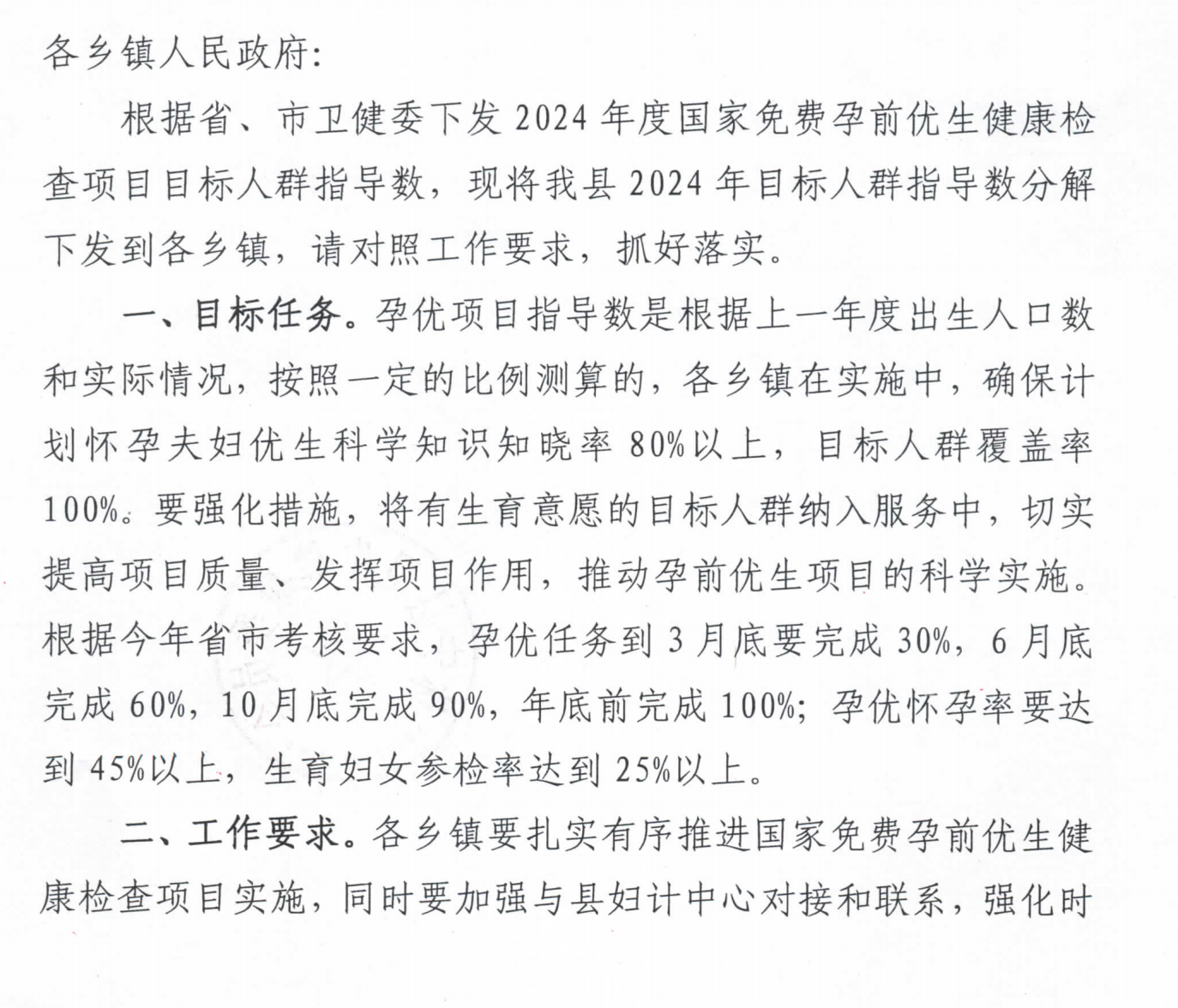 关于下发2024年度国家免费孕前优生健康检查项目目标人群指导数的通知