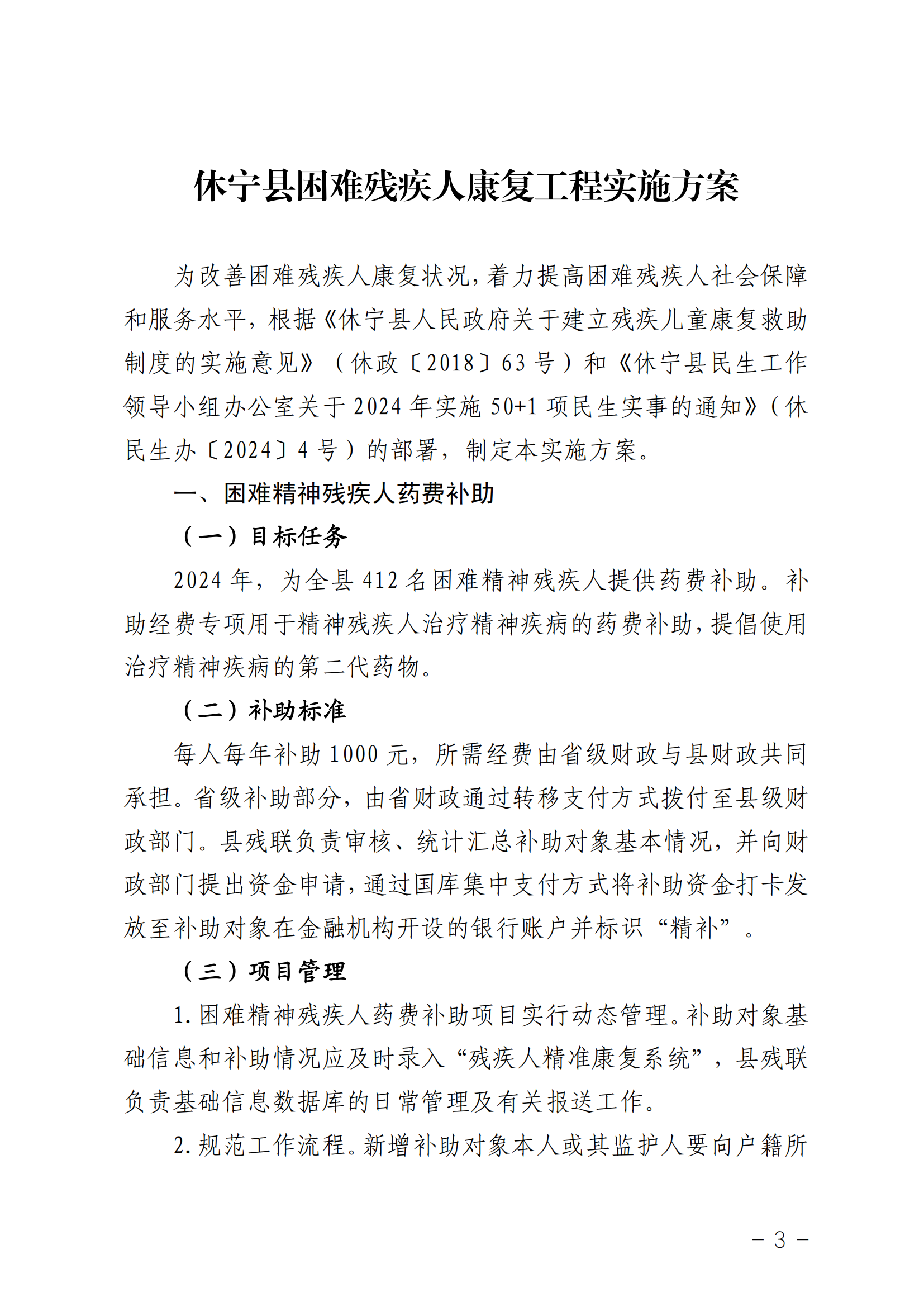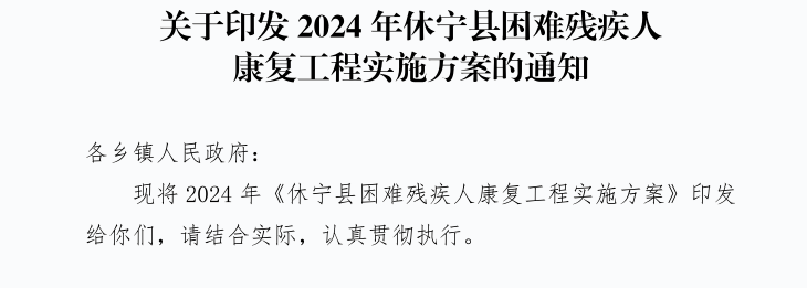 关于印发 2024 年休宁县困难残疾人康复工程实施方案的通知