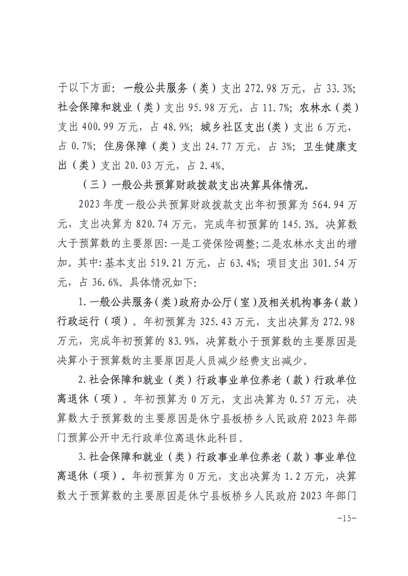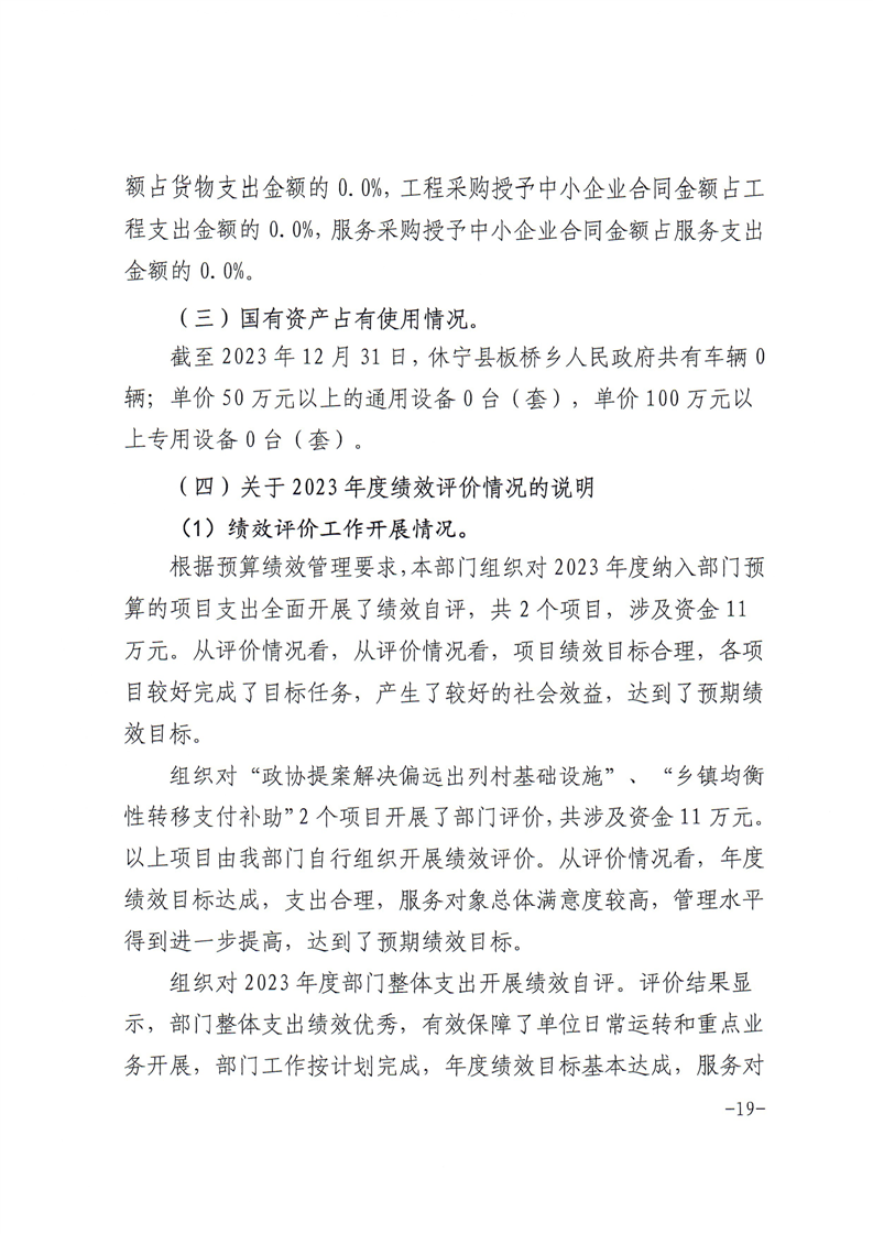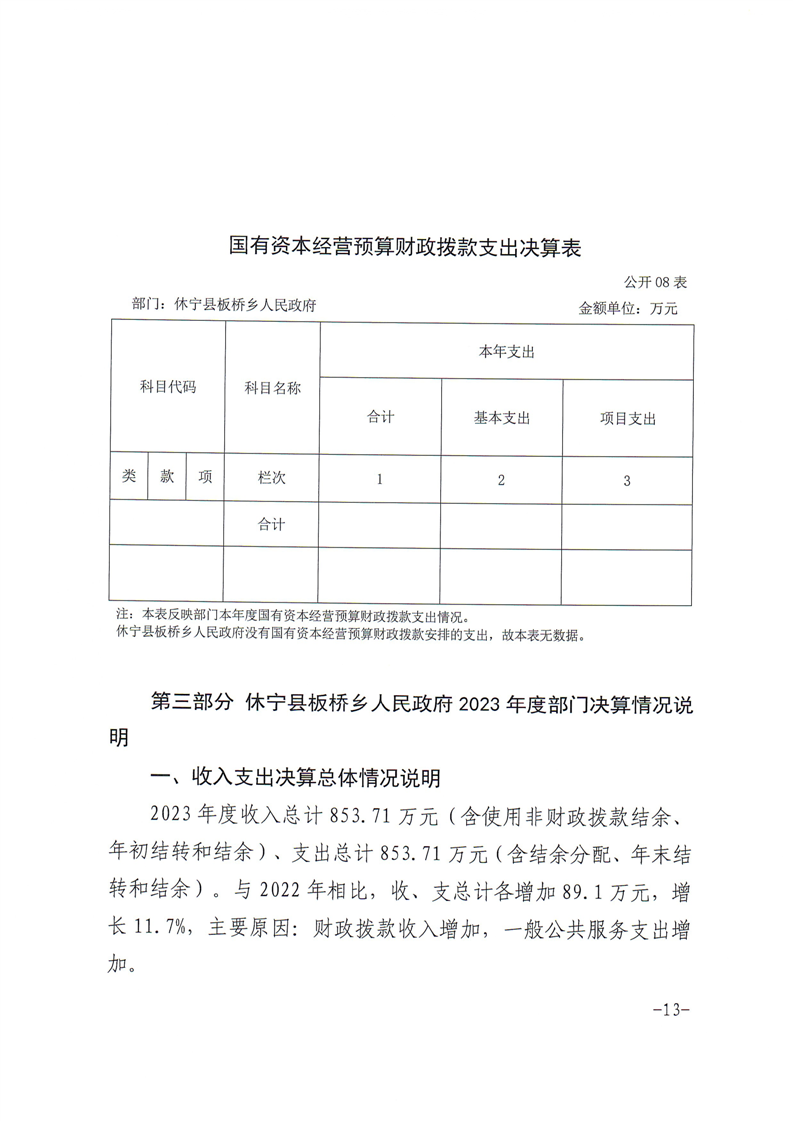 休宁县板桥乡人民政府2023年度部门决算