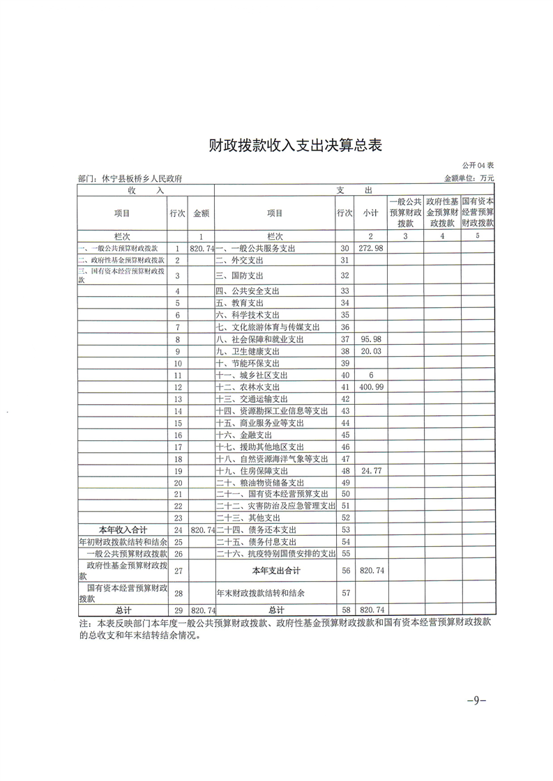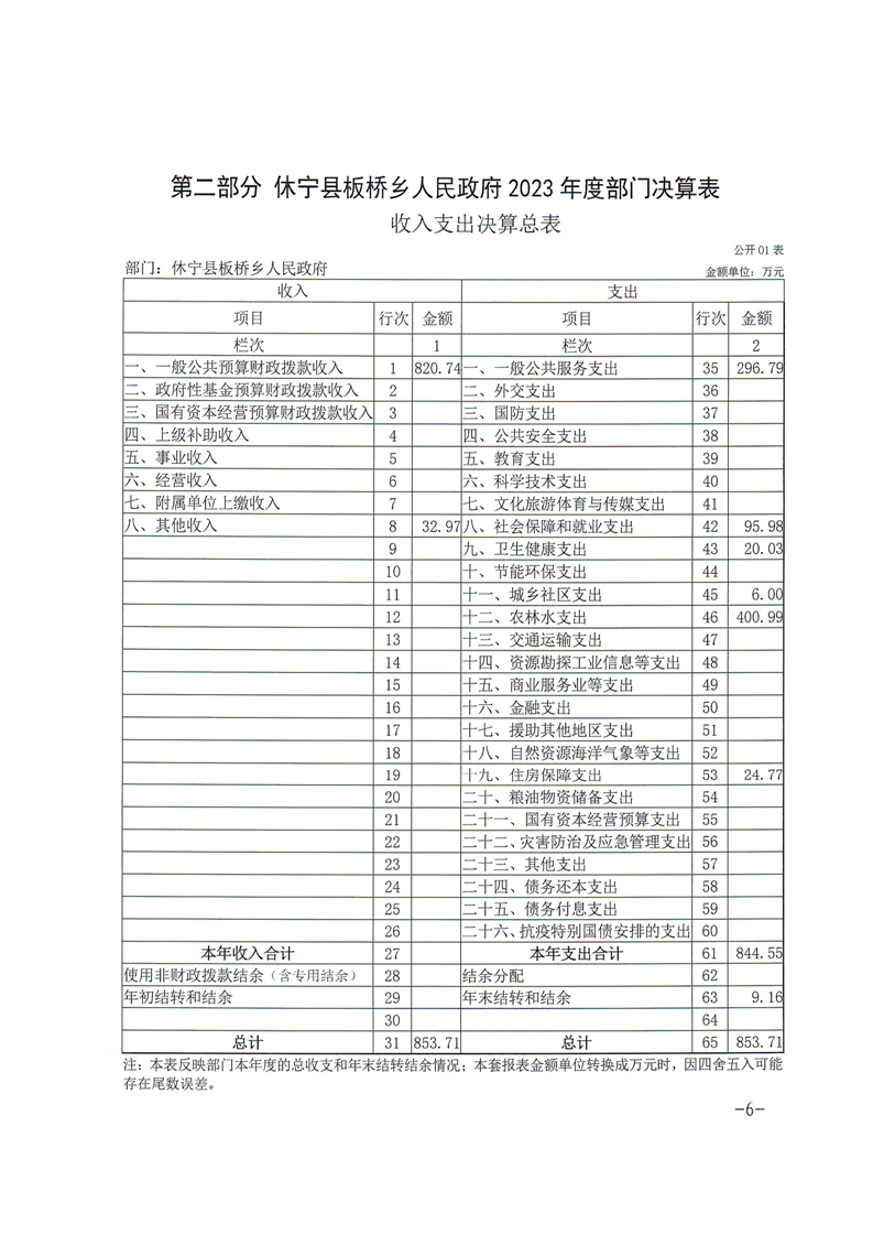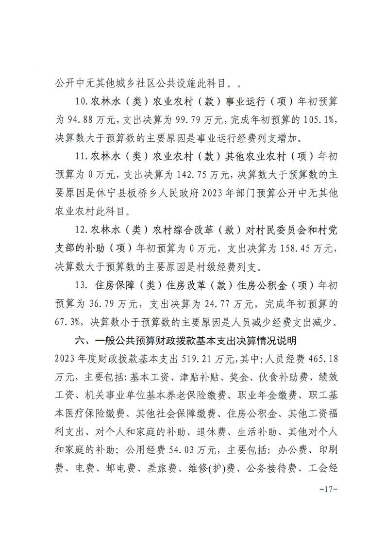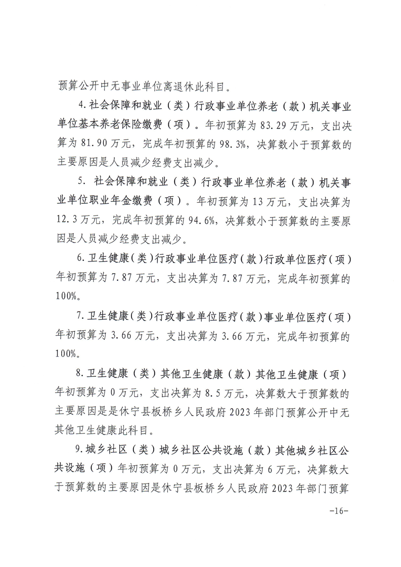 休宁县板桥乡人民政府2023年度部门决算