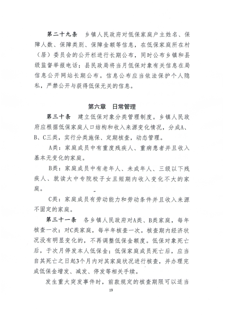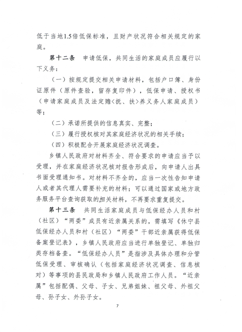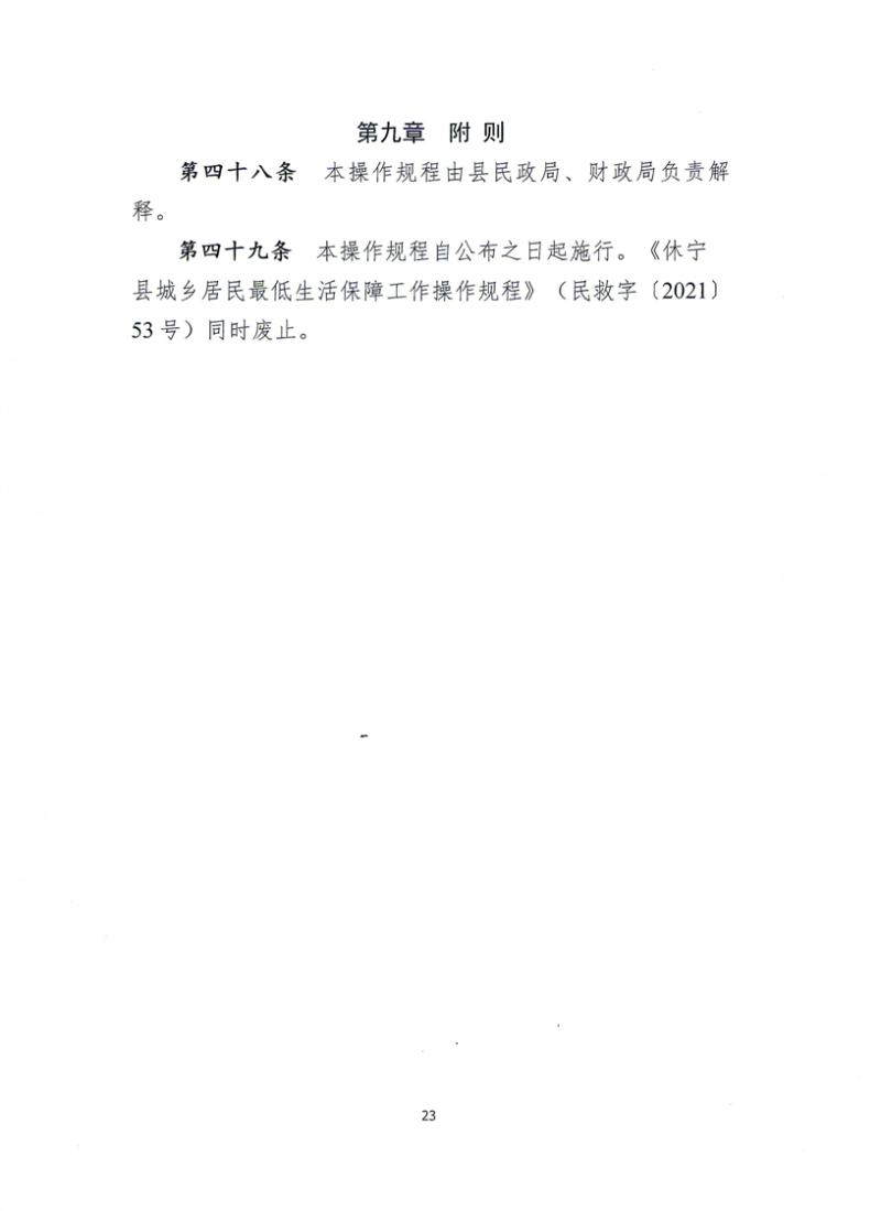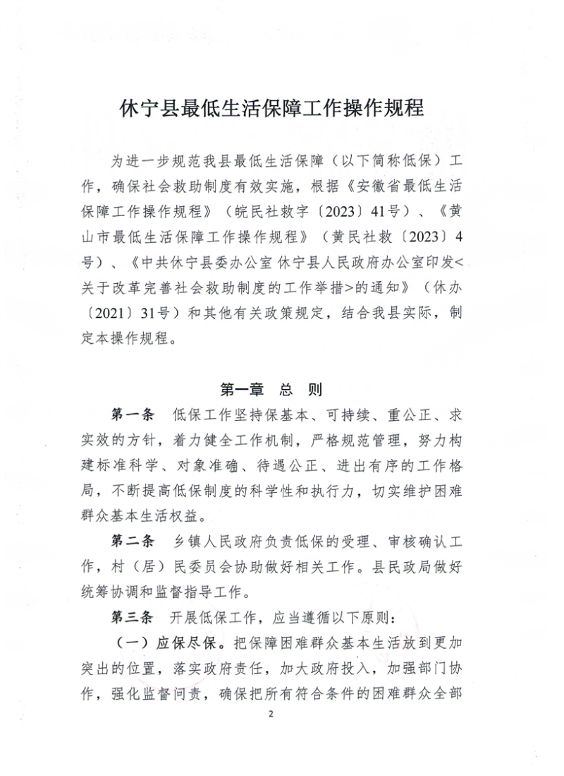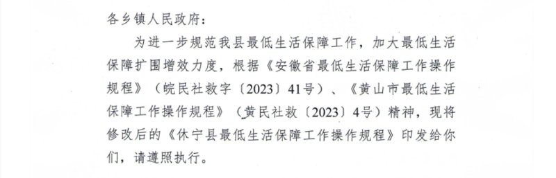 【政策标准】关于印发《休宁县最低生活保障工作操作规程》的通知
