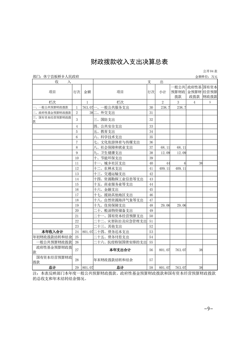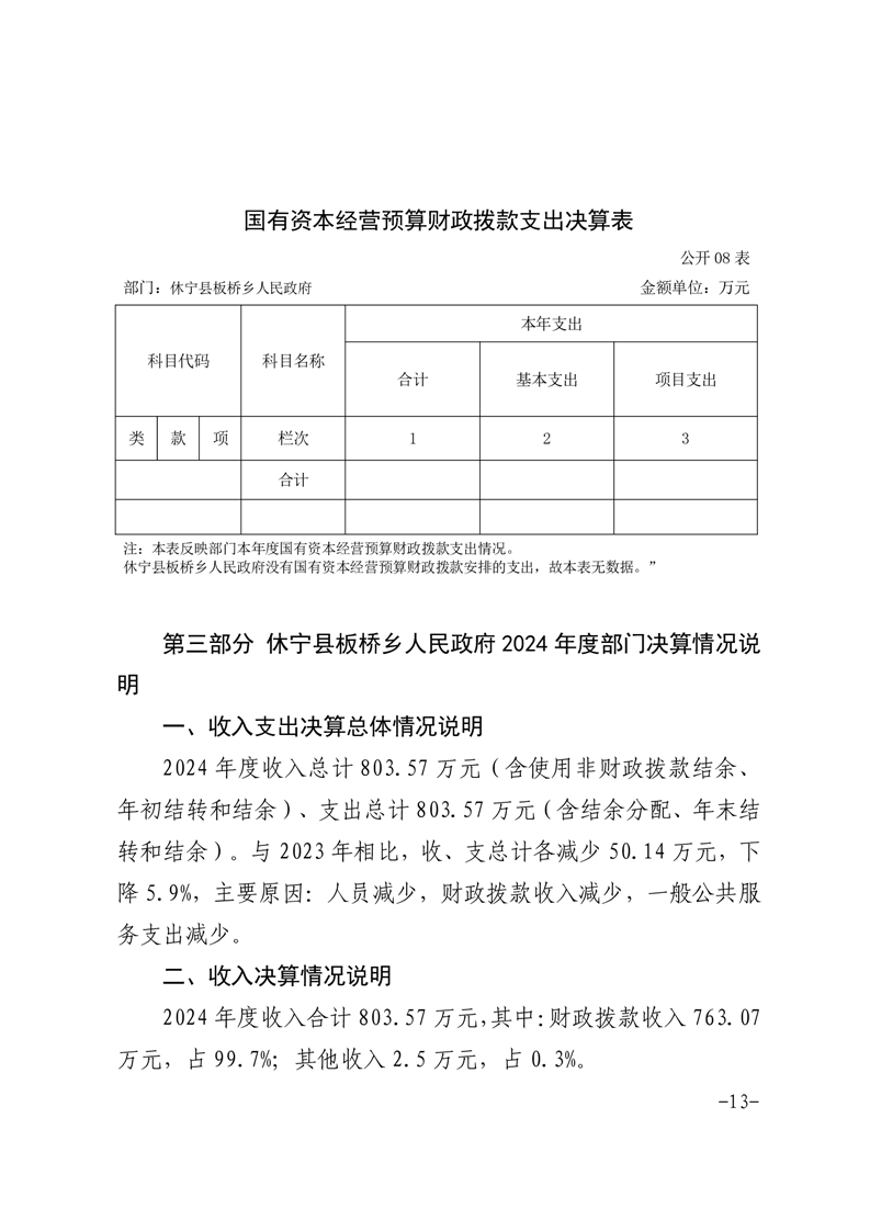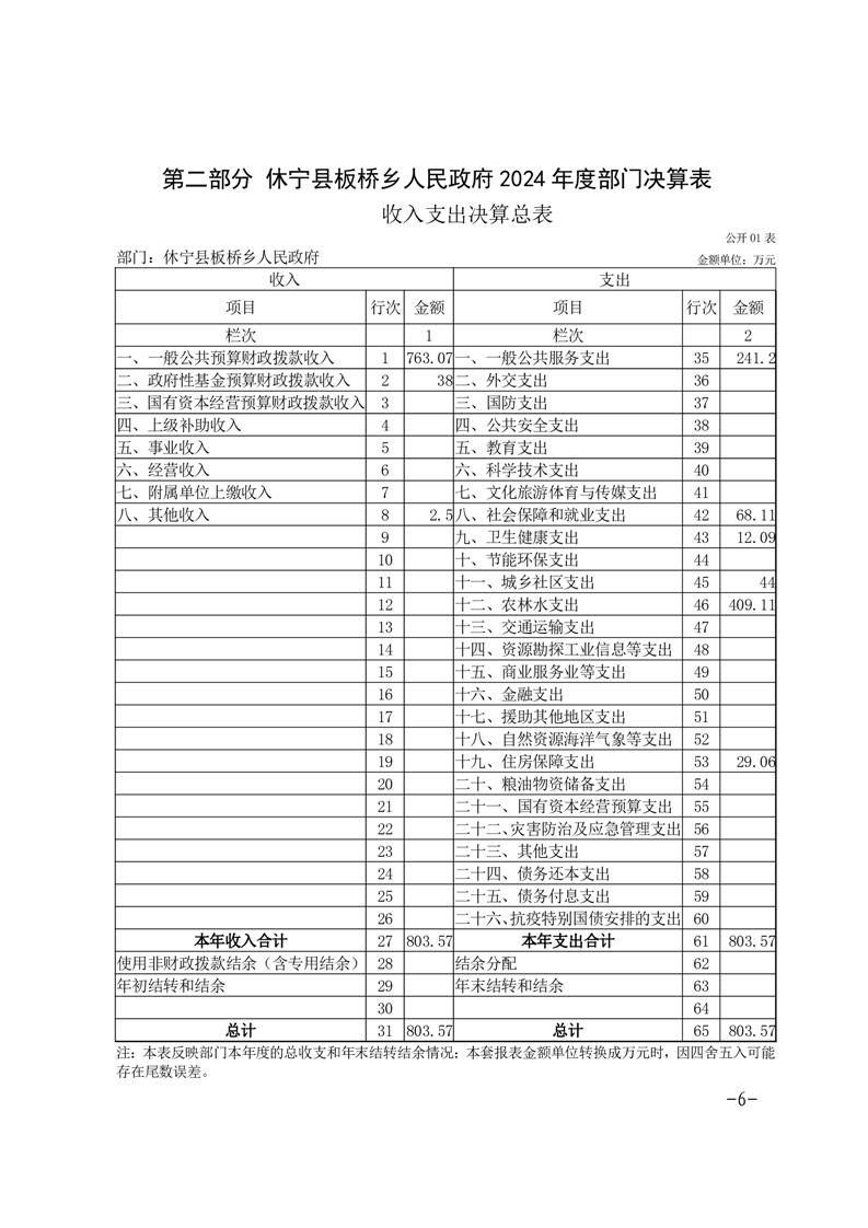 休宁县板桥乡人民政府2024年度部门决算