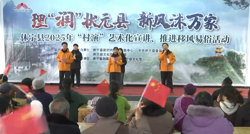 近日,以“理‘润’状元县 新风沐万家”为主题的休宁县2025年“村演”艺术化宣讲、推进移风易俗活动走进板桥乡沂川村。