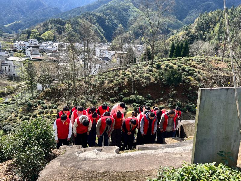活动现场庄严肃穆,烈士纪念碑巍然矗立。全体人员整齐列队、神情肃穆,向为民族解放、人民幸福英勇献身的革命先烈默哀致敬,深切缅怀先烈舍生取义、为国捐躯的崇高精神。志愿者们缓步上前,依次献上菊花,以朴素虔诚的方式寄托哀思,表达对革命先烈的无限敬仰与深切追思。