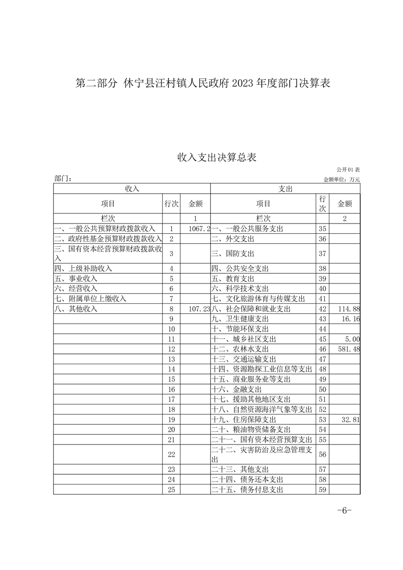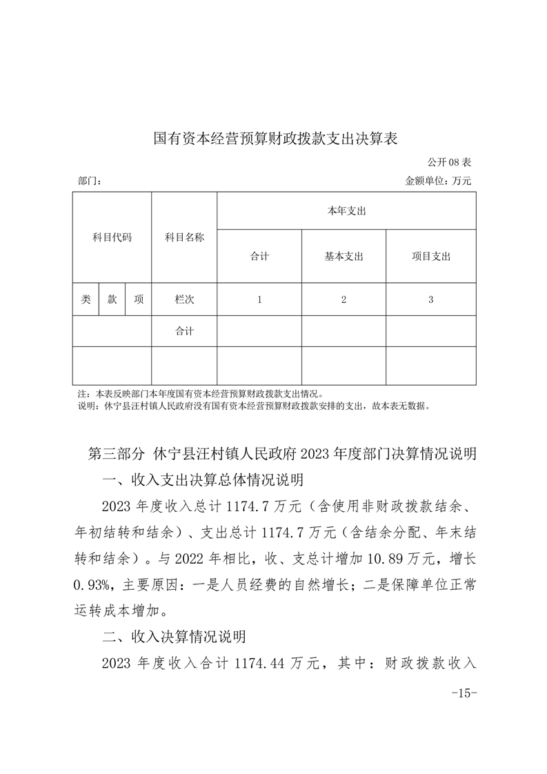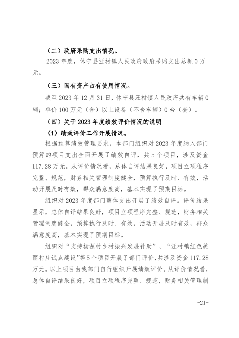 休宁县汪村镇人民政府2023年度部门决算