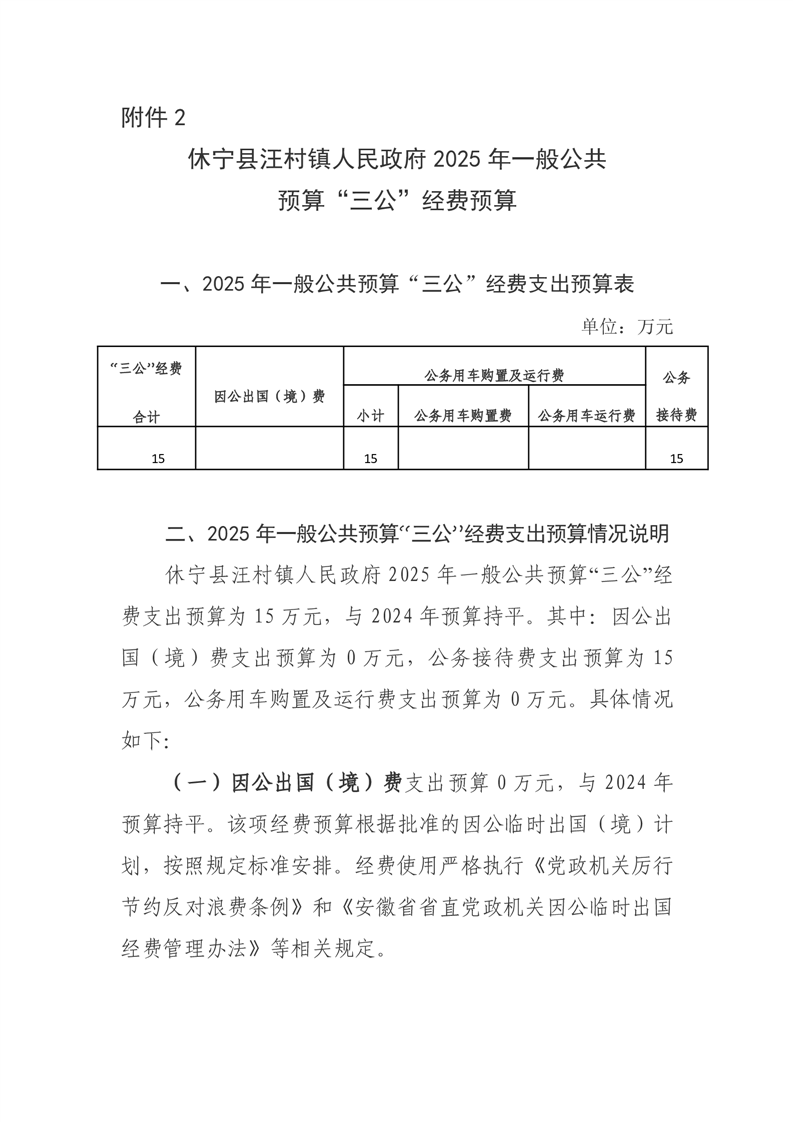 休宁县汪村镇人民政府2025年一般公共预算“三公”经费预算.pdf
