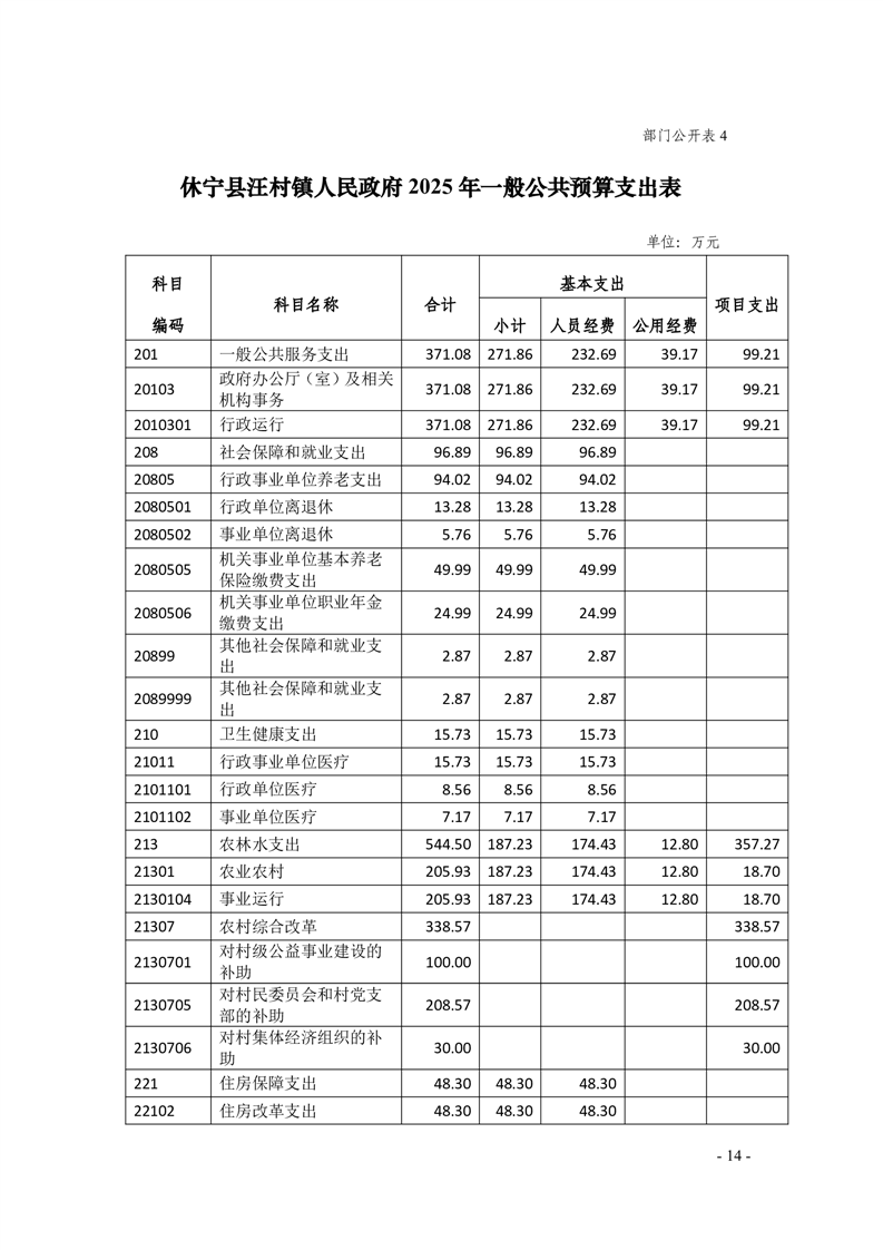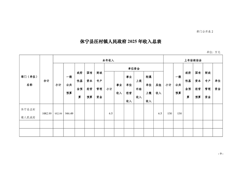 休宁县汪村镇人民政府2025年部门预算