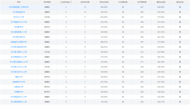根据省智慧学校监管平台监测反馈数据,截止2025年1月17日,本学期该县智慧课堂开设课程学科数累计达204门,均值为4.3门,实际学科达标率6799.96%,平均达标率144.68%;实际开课节数共计10885节,均值为231.6节,实际开课率达11338.54%,平均开课率达241.25%,两项指标均超过省定标准。其中,海阳二中凭借较好的信息化基础和师资力量,开课数量领先,占全县开课总数的5.7%。