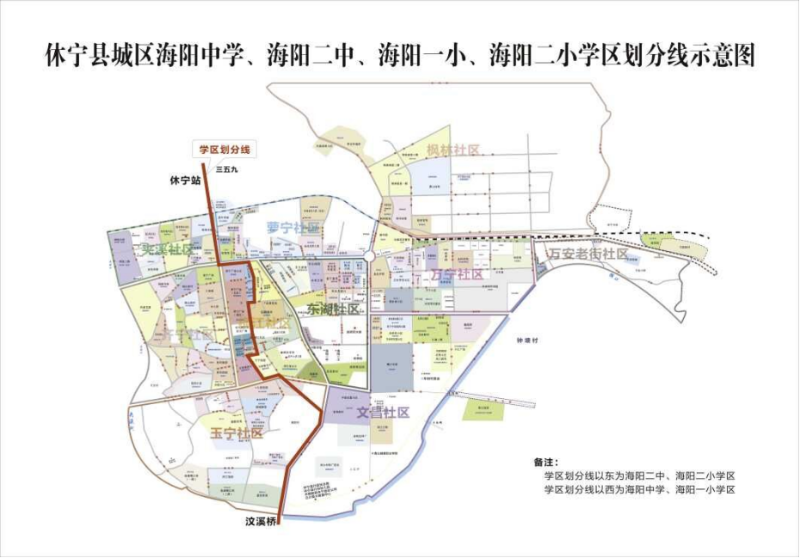 附件:1.休宁县城区海阳中学、海阳二中、海阳一小、海阳二小学区划分线示意图