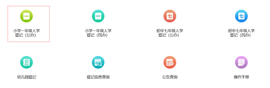 选择“小学一年级新生入学登记(公办)”入口,进入报名入口列表。