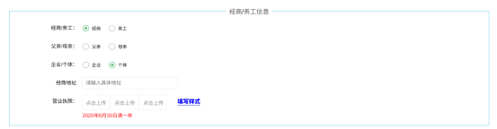 “个体”需上传“营业执照”(2025年6月30日满一年)。