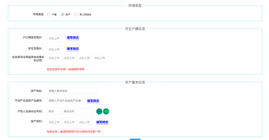 “房产”报名需填写学生户籍信息和房产信息。