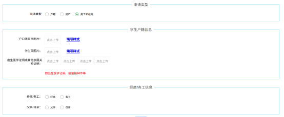 务工和经商信息:若父母为务工需上传“社保缴纳凭证”和“劳动用工合同”。