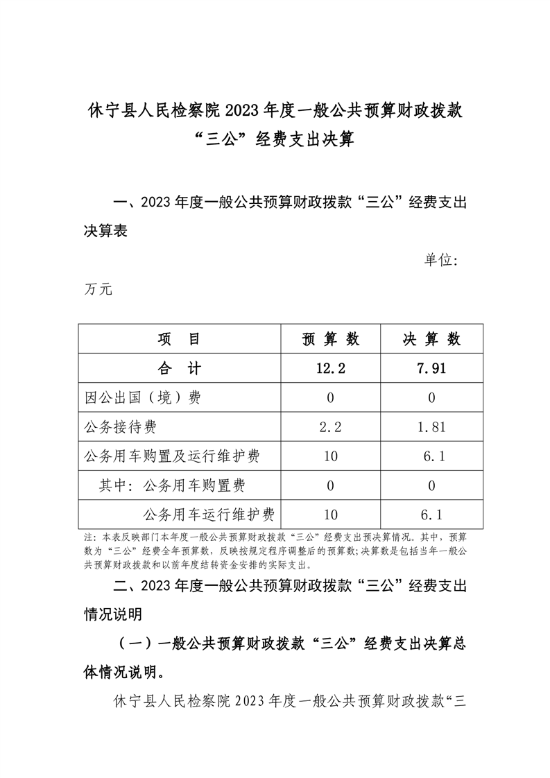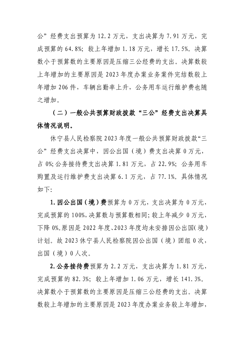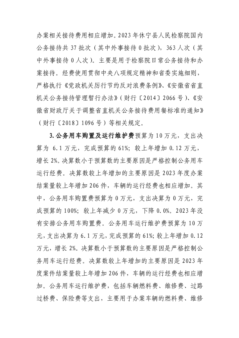 休宁县人民检察院2023年度一般公共预算财政拨款“三公”经费支出决算