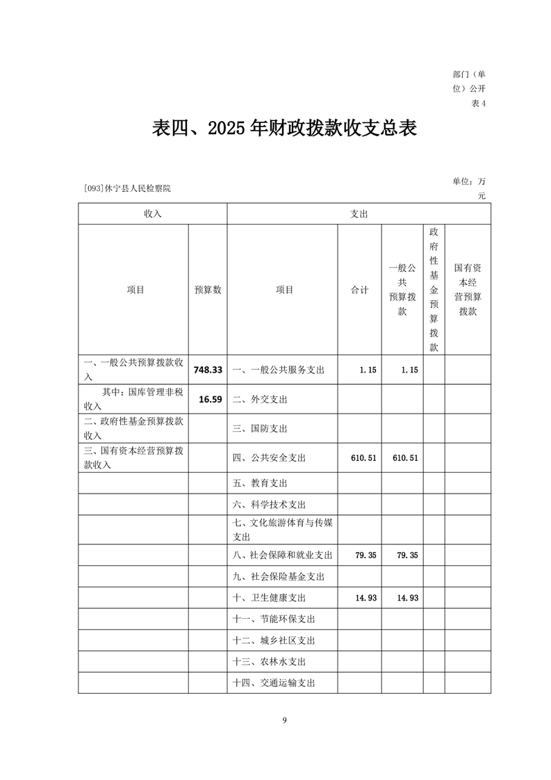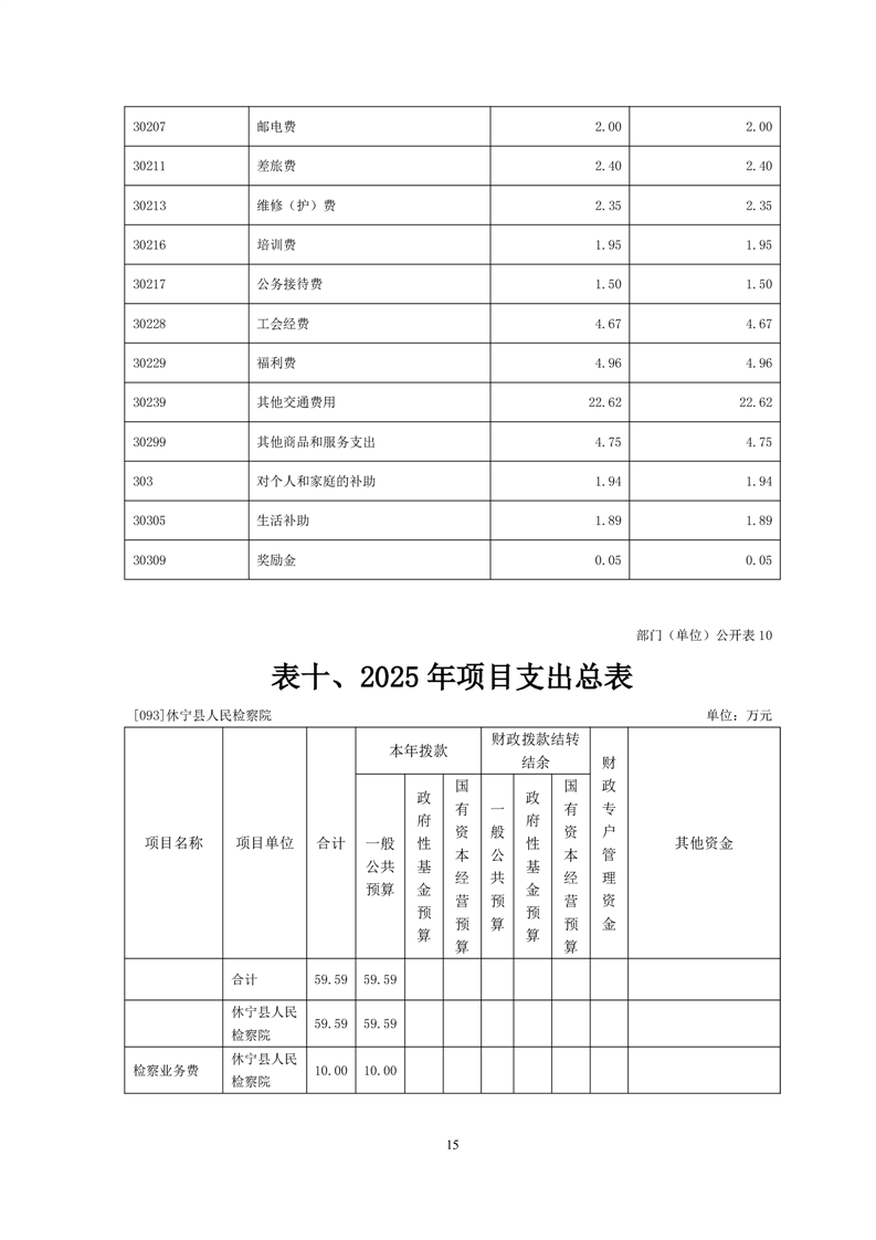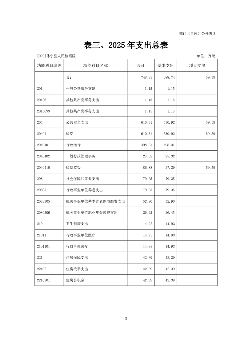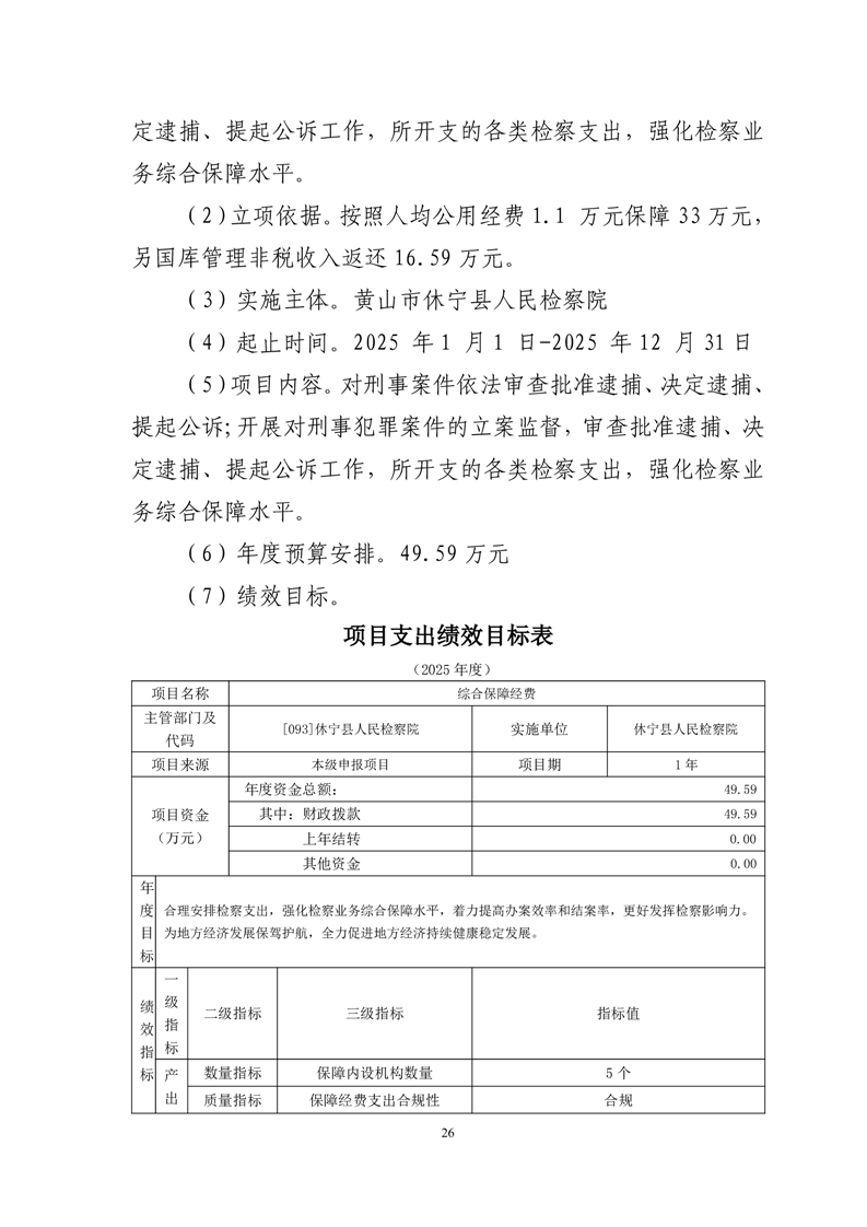 休宁县人民检察院2025年部门预算
